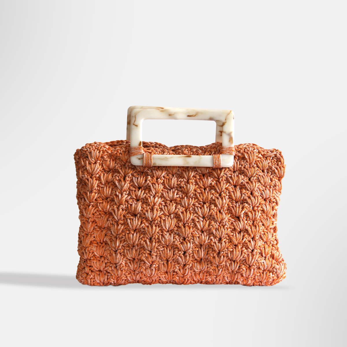 Borsa crochet realizzata a mano in thai color salmone, manici in resina, foderata all’interno